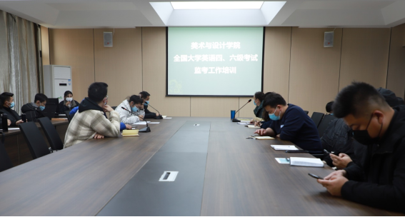 12月14日下午,美术与设计学院于艺术楼215会议室召开教职工大会暨四六级考务工作培训会议。美术与设计学院院长张瑞瑞、党总支副书记袁军、行政秘书李海丽、各教研室主任、教务员及学院全体教职工参加此次会议。会议由袁军主持。