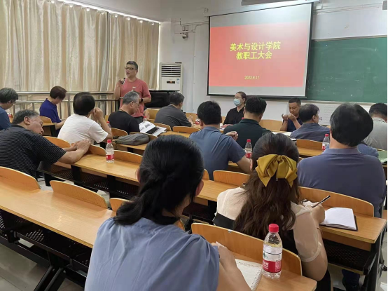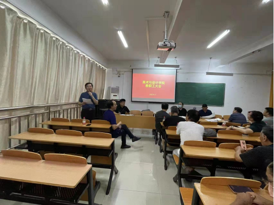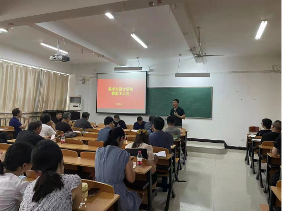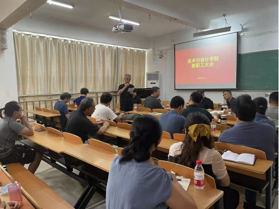 8月17日上午,美术与设计学院在艺术楼407室召开迎评工作推进会议。学院院长张瑞瑞、书记袁军、教学副院长王伟等院领导班子、特聘教授、全体教职工参加了会议。会议由袁军主持。