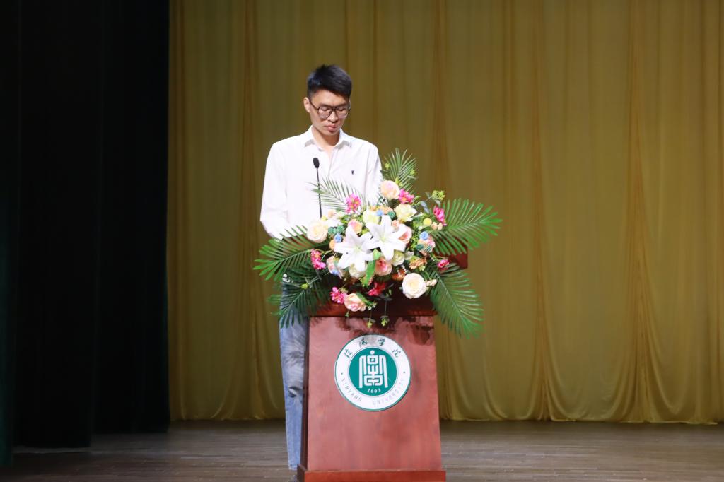 青年教师代表美术学专业陈官鹏分享了对大学教育与学习的思考。他指出,大学是人生的新篇章,在这个新的旅程中,同学们将面临许多新的挑战和机遇。他说:“作为教师,我们会尽己所能,帮助你们成长,帮助你们解除困惑,走向自己的梦想。”并鼓励同学们“追梦路上,无畏前行。”