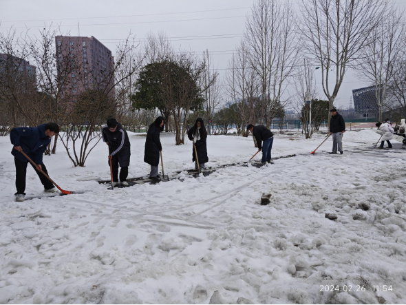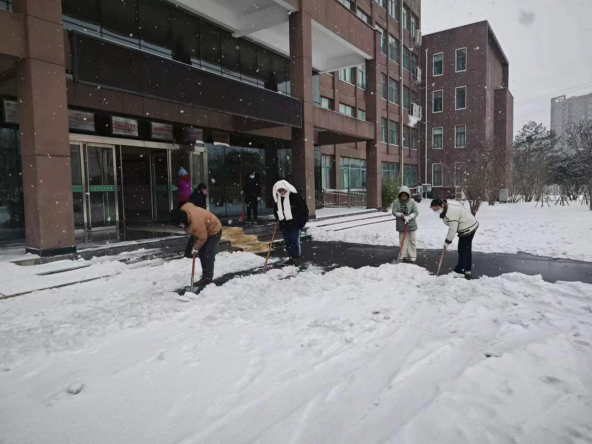 虽然天气寒冷,但老师和同学们能够克服困难,积极的参与到铲雪除冰的过程中来。铲雪过程中,志愿服务队成员不畏严寒、干劲十足、以雪为令,以饱满的精神状态铲雪除冰。他们手持铁锹、扫帚,分工明确、配合默契,一道道铲雪的身影在校园中形成了一道靓丽的风景线。