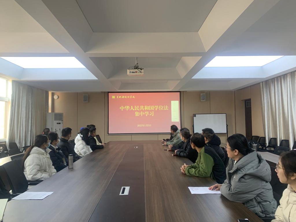 会中,王伟首先传达了学校关于贯彻实施《中华人民共和国学位法》的通知精神,强调了此次学习活动的重要性和紧迫性。周连峰围绕《学位法》的制定背景、主要内容、重要意义进行详细解读,并对《中华人民共和国学位法》、《学位条例、学位法细化差异比较》等主要内容进行领学。我院教职工认真聆听、积极思考,并就关心问题进行互动交流。大家纷纷表示,通过此次学习,对《学位法》有了较为全面、深入的理解,充分认识到《学位法》的重要意义。