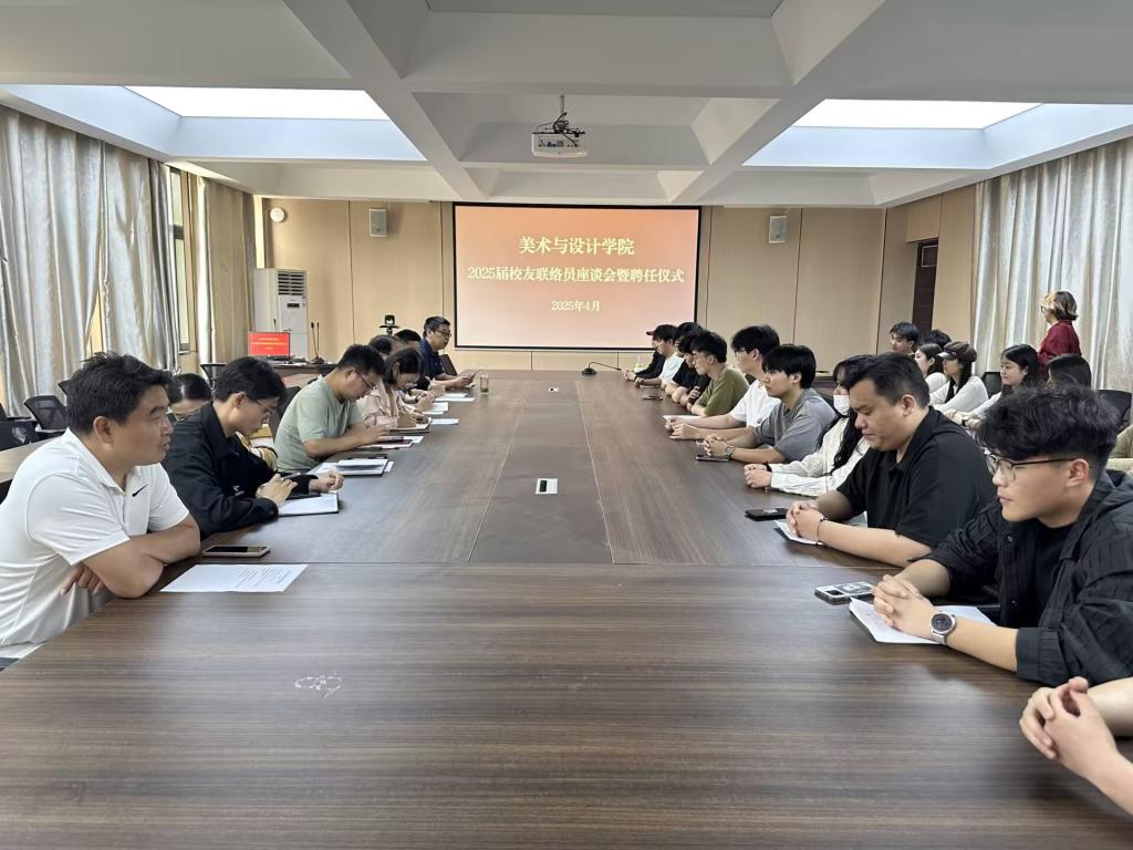 4月25日下午,美术与设计学院2025届校友联络员座谈会暨聘任仪式在艺术楼215会议室举行。学院党总支书记郑山峰、教学副院长王伟、学工干事秦金峰、行政干事刘梦依、毕业班辅导员及2025届全体校友联络员参加了会议。会议由秦金峰主持。