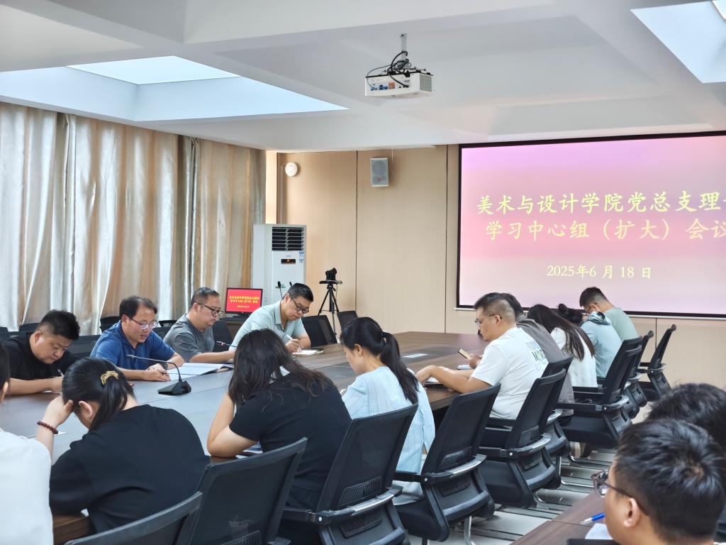 6月18日下午,美术与设计学院党总支理论学习中心组(扩大)学习会在215会议室进行。党总支书记郑山峰、党总支委员、党支部书记、教研室主任等参加了会议。会议由学院党总支书记郑山峰主持。