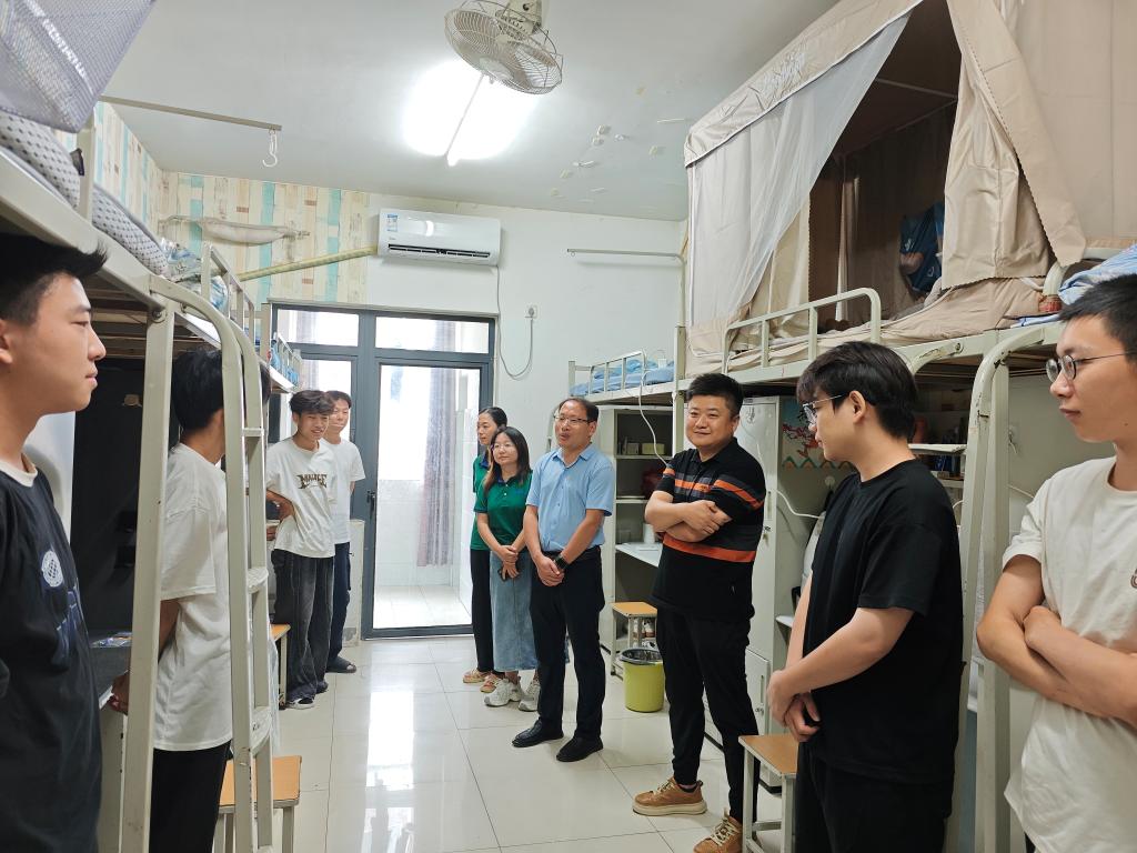 走访过程中,郑山峰一行与新同学亲切交流,详细询问了大家对校园环境、宿舍设施、校园网络、用餐饮水等方面是否满意,并耐心解答新生提出的问题,叮嘱同学们要增强安全意识,遵守宿舍管理规定,尽快熟悉校园环境,注意人身与财产安全,鼓励大家树立远大理想,积极参与实践活动,全面提升综合素养。王伟在与新生进行交流过程中,希望同学们早日明确目标、做好学业规划,学好专业知识,以积极饱满的状态投入新阶段的学习生活中。