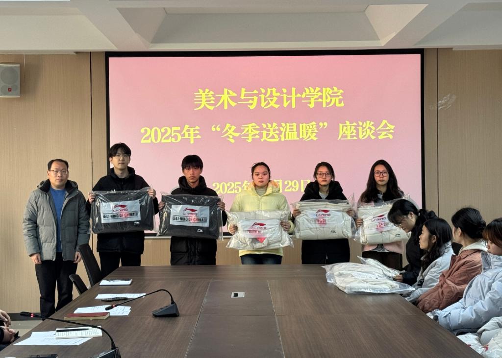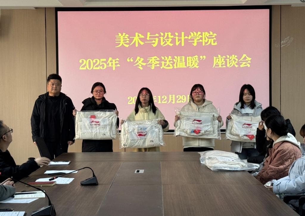 寒冬送暖,真情同行。为深入落实立德树人根本任务,传递学院人文关怀,切实关爱学生成长,12月29日下午,美术与设计学院“暖冬同行”2025年冬季送温暖活动在艺术楼215温情举行。学院党总支书记郑山峰、教学副院长王伟、教学秘书周连峰、学工干事秦金峰、全体辅导员老师及15位受助学生共同参加了此次活动。
