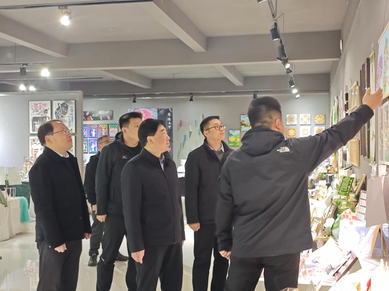 调研中,江玉安一行深入学院展厅,参观指导学生作品展,认真听取了作品创作理念,高度评价了学生的专业功底,充分肯定了学院教育教学成果。