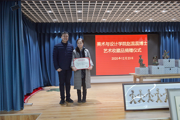 12月23日,我校美术与设计学院赵蕊蕊博士艺术收藏品捐赠仪式在学校信阳优秀传统文化传承馆隆重举行。副校长、学校地方民俗文化研究中心主任王志华出席捐赠仪式。美术与设计学院教授赵蕊蕊博士,人事处处长张凌江,美术与设计学院院长张瑞瑞、党总支副书记袁军,校办和美术与设计学院师生代表参加了捐赠仪式。