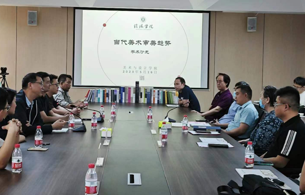 王心耀教授在艺术楼215会议室做了题为“当代美术审美趋势”的学术报告。美术与设计学院院长张瑞瑞、党总支书记袁军、副院长王伟、美术学教研室主任项军和特聘教授、青年教师等参加了报告会。