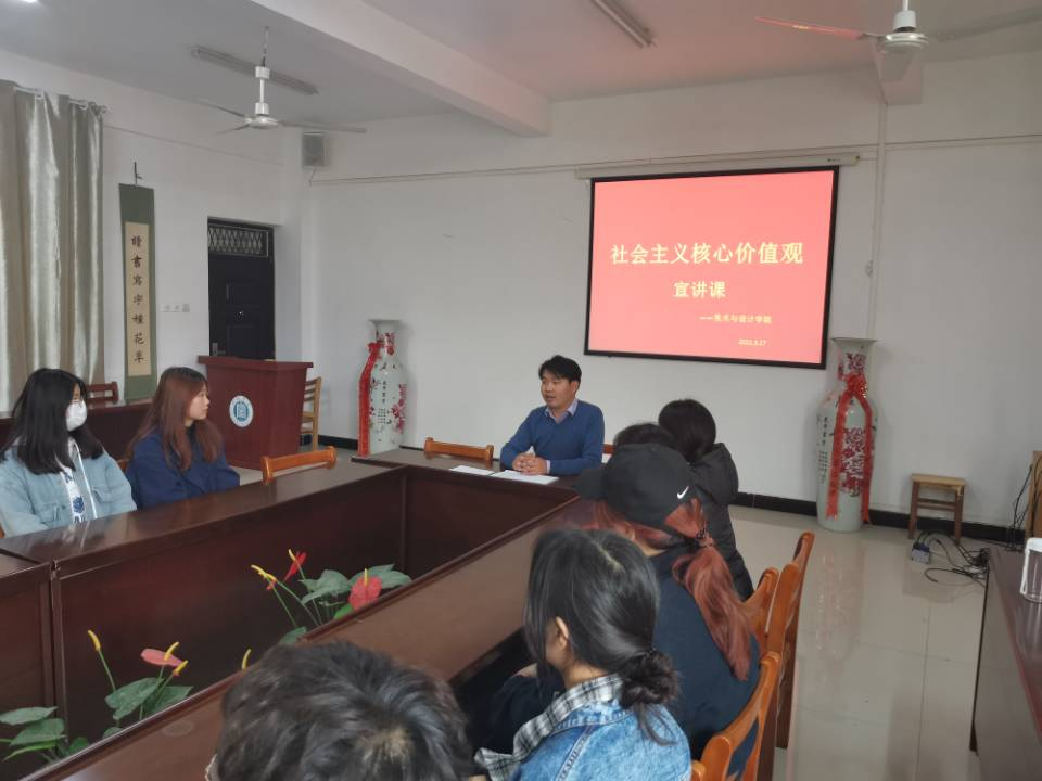 为进一步学习贯彻社会主义核心价值观重要内容。3月19日下午,美术与设计学院团总支书记刘加宽在艺术楼215会议室开展学习社会主义核心价值观主题团课。学院团总支成员、相关团支部学生干部代表参加了本次主题团课。