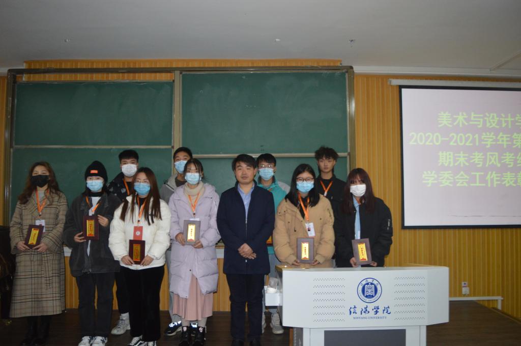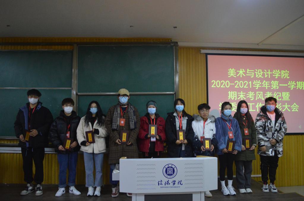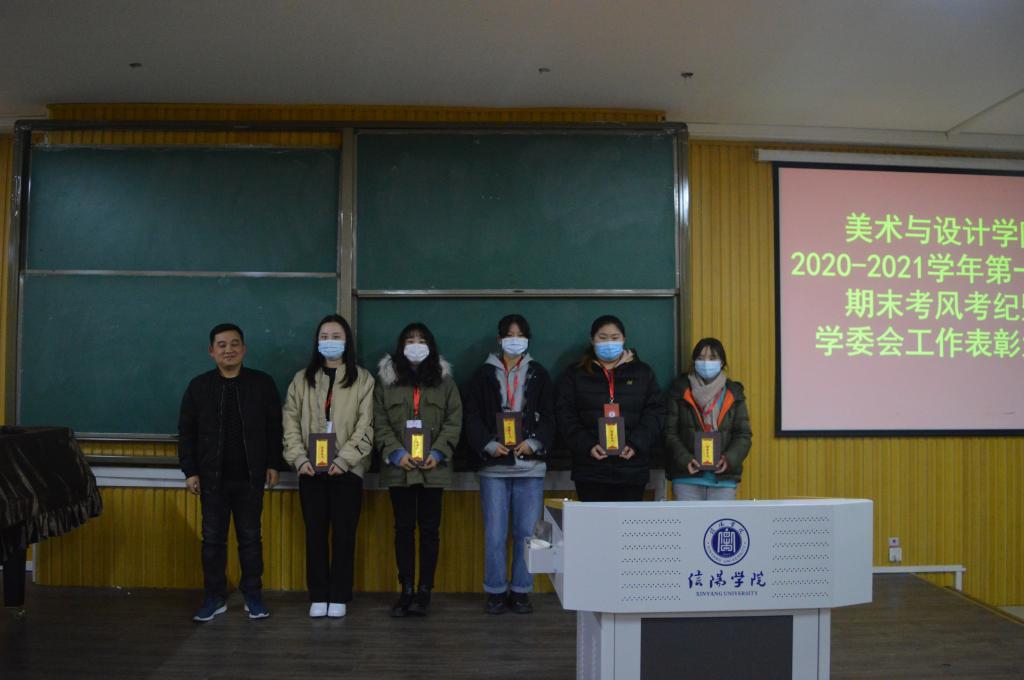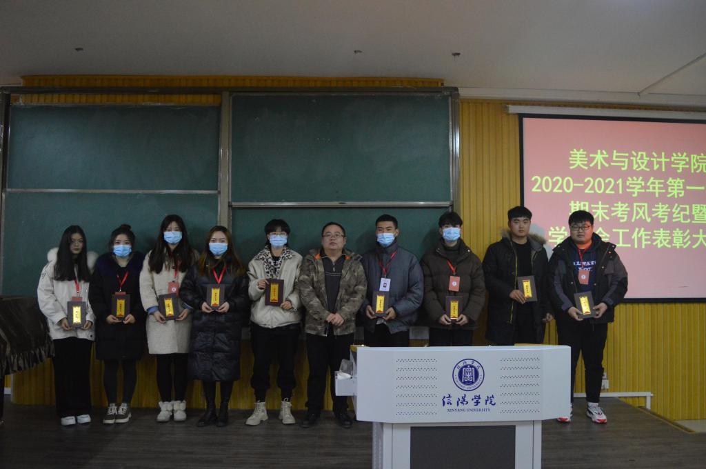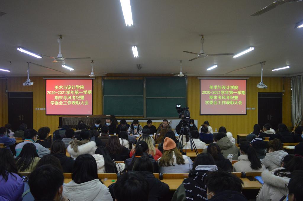 为严肃考风考纪,保障本学期期末考试工作顺利进行。12月24日晚,美术与设计学院在艺术楼101室召开2020-2021学年第一学期期末考试考风考纪教育大会暨学院学委会表彰会。学院党总支副书记袁军、教学秘书周连峰、学工干事周扬、全体辅导员、教学资产管理员路凤云,学院第九届学委会全体学生干部、各年级班级学生干部代表参加了本次会议。会议由周连峰主持。