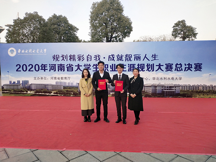 日前,由河南省教育厅主办、河南省大中专学生就业服务中心和华北水利水电大学承办的2020年河南省职业生涯规划大赛总决赛圆满落幕。河南省教育厅二级巡视员吕冰,学生处处长、二级巡视员李培俊;华北水利水电大学苏喜军副校长以及46所高校近300名师生现场观摩比赛。我院胡俊豪获本次比赛总决赛铜奖。