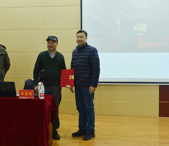 报告会开始前,王志华代表学校为王教授颁发聘书,聘请王宏剑为我校名誉教授。