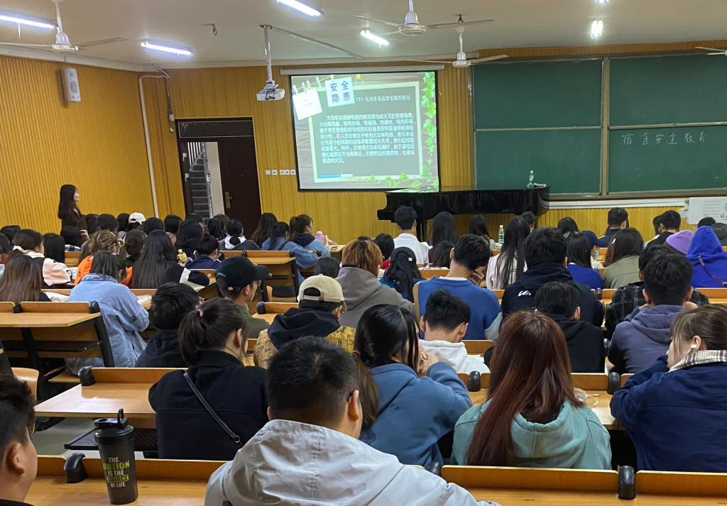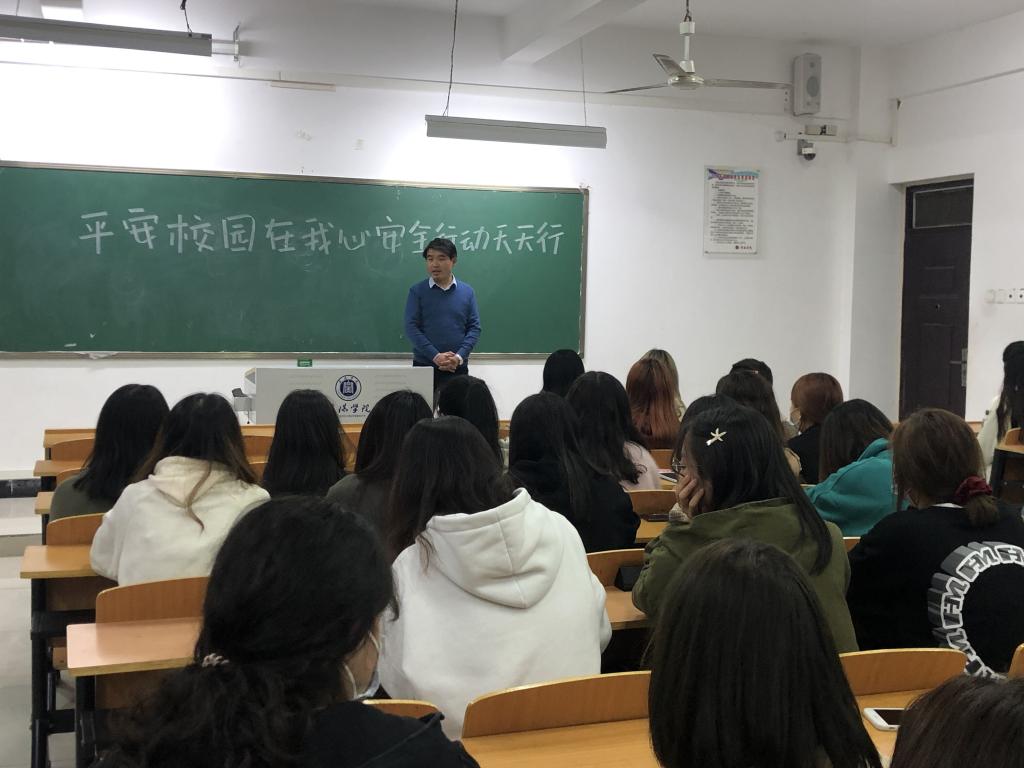 辅导员老师多次召开学生安全教育主题班会,在学院党总支副书记袁军的带领下,多次走访检查学生宿舍,在宣传学生安全告知书的同时,以宿舍用电安全、校园贷、网络电信诈骗、远离毒品、预防艾滋病、心理安全、“双防”为主要内容,使学生充分认识安全教育的重要意义,切实提高安全防范意识。