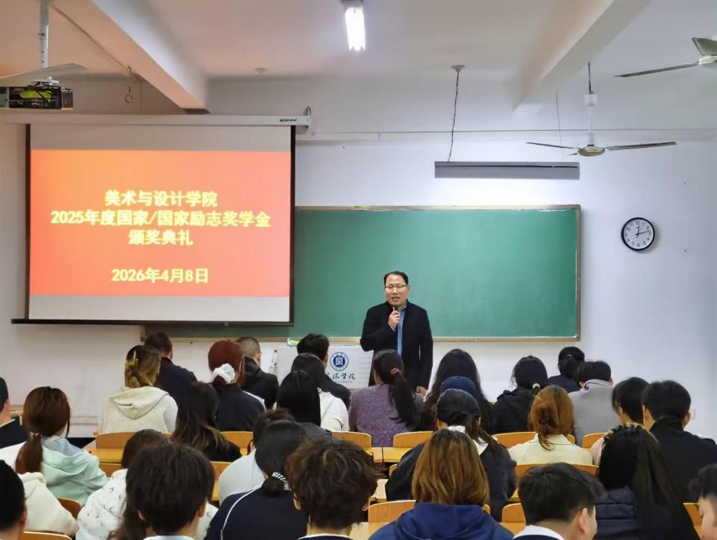 4月8日,美术与设计学院成功举办了2025年度国家奖学金、国家励志奖学金颁奖典礼暨优秀学子进班级宣讲活动。学院党总支书记郑山峰、副书记秦金峰、团总支书记李静、全体辅导员及各年级学生代表参加活动。